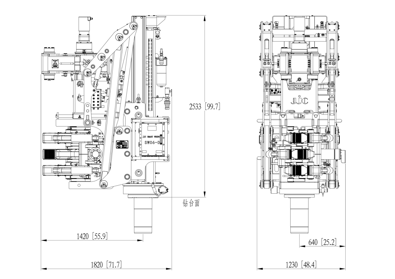 Compared with equivalent products, the equipment has the smallest footprint and lightest weight. It can be installed in the front of the driller across the wellhead so that the driller can see the jaw and tool joint directly. It has the lowest hydraulic pressure request and higher safety level.