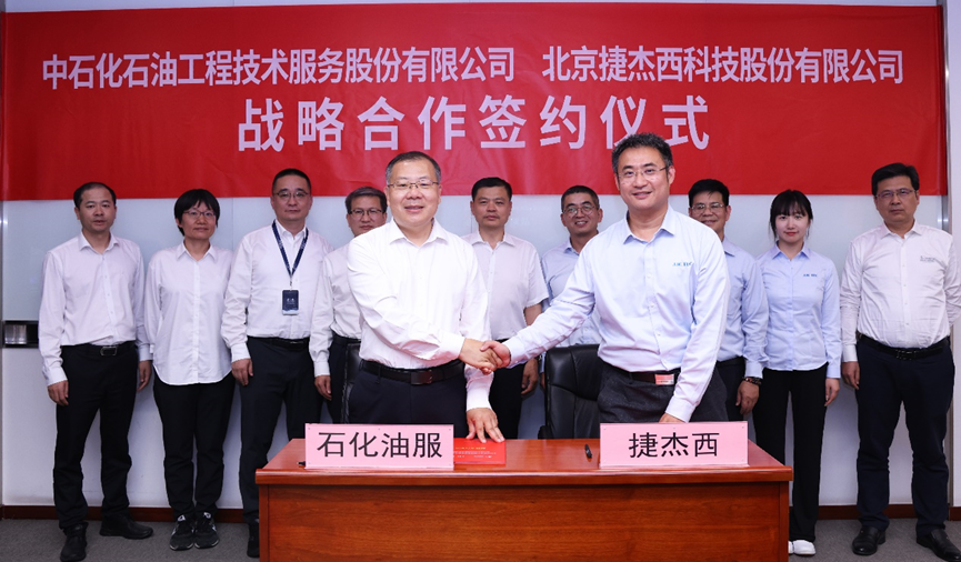 在與會嘉賓的共同見證下,石化油服總會計師、總法律顧問程中義與捷杰西總裁梁小兵作為雙方簽約代表,正式簽署了戰(zhàn)略合作協(xié)議。雙方將以此次簽約為新起點,共同推動石油石化行業(yè)邁向高質量發(fā)展的新階段,為保障國家能源安全貢獻科技力量。